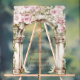 An antique marble arch decorated with blush pink watercolored florals. Personalize and add her name and the date.