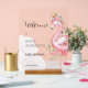 ¡Celebra la llegada de una princesa con este adorable cartel de bienvenida con una ducha de bebé color rosa en un fondo transparente! Con una encantadora flamenca acuática con una corona floral y una tiara dorada, este diseño exuda elegancia y diversión, lo que lo convierte en el lugar perfecto para una ducha tropical, floral o con temática de niñera. El poster es totalmente personalizable con el nombre de la mamá y la fecha del evento.