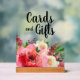 El hermoso cartel de ducha de novia acrílico transparente incluye "Tarjetas y Regalos" en letras de moda con elegantes flores rosadas y crema. CAMBIAR EL TAMAÑO para que se ajuste a su evento y pedido con o sin un soporte de madera. COINCIDIENDO elementos de nuestra colección.
