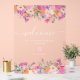 Letrero de bienvenida de ducha de novia de verano primavera con flores silvestres campestres bonitas en rosa, melocotón, lavanda, verde y más, con tipografía de pincel en un fondo transparente elegante.