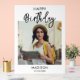 Crea tu propia decoración personalizada de fiesta de cumpleaños con un cartel de foto acrílico personalizado con feliz cumpleaños y nombre personalizado en blanco y negro.