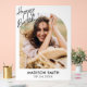Crea tu propio símbolo de cumpleaños de fotos personalizado con un guión moderno caligrafía feliz cumpleaños y un nombre de tipografía mínimo y diseño de fecha para una decoración personalizada de cumpleaños.