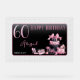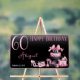El diseño de 60 años, rosa y negro, inspirado en la moda francesa, presenta un diseño de estilo Art Déco Glamoroso, con un pastel de caja gorra, un estilete rosa y una bolsa de maquillaje entre varios regalos de cumpleaños sin abrir y deliciosos pastelitos. Perfecto para celebrar fiestas de cumpleaños. La edad se crea en un tipo de letra falso purpurina rosa.