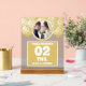 Globos de oro glamorosos. Foto boda número de tabla del signo acrílico congelado. Utilice las herramientas de plantilla en línea para agregar su propia foto. LA FOTO DE LA MUESTRA NO ESTÁ INCLUIDA. SUSTITÚYASE CON SU PROPIA FOTO ANTES DE PEDIRLA. Los diseños son ilustraciones/gráficos impresos planos. #zazzlemade #boda #foto #número de mesa #oro moderno #confetti #globos #elegante #espumoso #Rótulo acrílico #Rótulos de caballete