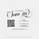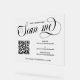 Firma de pequeñas empresas acrílicas translúcidas para uso promocional con una mirada de escarcha impresa para compartir su medio social y dirección de sitio web con sus clientes y clientes con la ayuda de su código QR. Escanéame en la parte superior en un guión de caligrafía negra y poco clara. Elegante símbolo acrílico promocional para tu pequeña empresa personalizado con tu código QR y los identificadores de medios sociales y sitio web con fuentes negras contra blanco translúcido. Cartel promocional práctico y elegante en acrílico para su pequeña empresa.