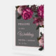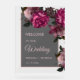 This dark romantic wedding welcome board features pink hand drawn vintage roses on a transparent background.