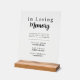 Honor the loved ones who are forever in your heart with this elegant black and white wedding memorial acrylic sign. Designed with a modern minimalist aesthetic, this In Loving Memory sign adds a meaningful and heartfelt touch to your wedding remembrance table. Customizable with your deceased loved ones names.