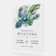 Peacock theme wedding welcome sign featuring a beautiful peacock, feathers and tropical leaves.