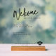 Signo acrílico minimalista moderno que da la bienvenida a los huéspedes con su red wifi e información de contraseña.