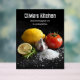 Verduras frescas y hierbas como limón, rodajas de limón, clavo de ajo, sal áspera, ramo de tomate y tomate todo sobre una mesa de cosecha negra. Un regalo perfecto para los amantes de la cocina y el negocio de la cocina casera.