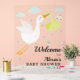 Una cigüeña lleva un lindo paquete de bebés amarillos por el cielo en este acrílico y claro signo de bienvenida neutro con una ducha neutra de género con los detalles en letras de moda. COINCIDIENDO con los elementos de nuestra colección, rosa y azul, también.