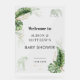 Girafa con temática forestal salvaje, y elegante seña de bienvenida de los niños con ducha de bebé animal safari con jirafa, elefante, Relieve metalizado dorado y hojas verdes. Bienvenidos a una aventura salvaje con este fiesta de ducha de personalizado safari en selva. El llamativo diseño presenta un frondoso follaje tropical que crea un ambiente vibrante para el adorable elefante y la jirafa. Perfecto para marcar el tono de su celebración, este cartel personalizado se puede personalizar con el nombre y la fecha de ducha de los padres, añadiendo un toque especial a su decoración de eventos. Su ilustracion original y su abundante vegetación harán las delicias de los huéspedes de todas las edades, lo que lo convierte en un punto de encuentro ideal para las mesas de regalo, los telares fotográficos o las entradas. Este querido signo de bienvenida seguramente se convertirá en un querido aguijón mucho después de que el pequeño haya llegado.