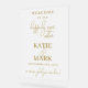 Una hermosa forma de dar la bienvenida a sus huéspedes a uno de los días más importantes de su vida. Boda de bienvenida dorado minimalista símbolo de acrílico escarpado blanco con texto personalizado. ¡Personalízala para adecuarla a tu gusto!
