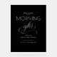 Añada un toque de elegancia moderna a sus festividades bodas con este símbolo negro de acrílico "Morning After". Diseñado con tipografía de moda y elegantes acentos de escritura, es una manera elegante de dar la bienvenida a los huéspedes a su brunch o celebración post-boda. Personalizable completo, puede personalizar los nombres, fecha y ubicación, cambiar el color del texto, tipo de letra, etc. El elegante fondo negro (personalizable) y el diseño minimalista hacen que sea lo suficientemente versátil como para complementar cualquier tema boda y al mismo tiempo añadir un toque de acabado sofisticado.