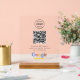 Un simple soporte de madera personalizado transparente de acrílico para una señal de 5x7 en un estilo minimalista moderno, diseñado para mostrar un código QR escaneable que enlaza directamente a la página de reseñas de Google. Esta plantilla versátil se puede personalizar con el logotipo de su empresa, gráfico o foto, junto con su código QR y un mensaje personalizado que anima a los clientes a compartir sus comentarios. El logotipo de la plataforma de reseñas también se puede cambiar por Yelp, TripAdvisor, Facebook o cualquier otro sitio para crear un diseño personalizado y profesional que se adapte a su negocio. Perfecto para cafeterías, salones, boutiques, oficinas y marcas basadas en servicios, esta pantalla limpia ayuda a aumentar la interacción y a mejorar su reputación. Consejo: Utilice el Generador de URL de reseñas de GatherUp gratuito para crear un enlace directo a su página de reseñas antes de generar su código QR.