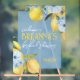 Bienvenide a sus invitados con este hermoso letrero de bienvenida de acrílico. Personalice con el nombre del invitado de honor, el tipo de evento y la fecha. Parte de nuestra colección de baby shower "Main Squeeze", pero también funciona muy bien para una boda de limón, celebración de cumpleaños de limón o baby shower de "Little Lemon"! Cuenta con hermosos limones acuarela amarillos y flores azules.