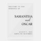 Bienvenidos a sus invitados con un toque de elegancia y sofisticación con nuestro letrero de bienvenida personalizado para bodas. Este letrero diseñado con belleza presenta un diseño clásico y atemporal con sus nombres y fecha de boda destacados. Perfecto para agregar un toque personal y elegante a su día especial, este letrero de bienvenida está impreso en material de alta calidad, lo que garantiza que se vea impresionante desde la ceremonia hasta la recepción.
