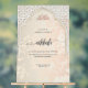 Cartel de Bienvenida Personalizado para Nikkah en Acrílico – Decoración de Boda Islámica con Fondo Perla y Enrejado Floral Blanco