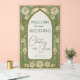 Make a grand entrance with this luxurious wedding welcome sign featuring a rich gold background and stained glass details. Embellished with soft cream roses, this design blends timeless elegance with artistic flair. Personalize with your names and date for a sophisticated touch to your ceremony or reception.
