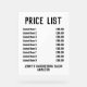 Lista acrílica de precios para cualquier negocio como un bar de uñas, salón de belleza, peluquería o peluquería. Alterar los precios como quieras. Muestra hasta 9 artículos y precios. Blanco y negro.