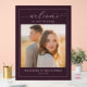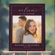 This elegant wedding sign features a warm and inviting design, perfect for celebrating your special day. The layout includes a central photo area surrounded by a rich maroon border, creating an intimate and sophisticated frame. The typography is stylish and cursive, adding a touch of romance to the overall look. With its soft color palette and heartfelt message, this sign exudes joy and love, making it ideal for welcoming guests at your wedding reception. Customize with personal details to make it uniquely yours.