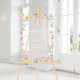 Un bonito tablero de bienvenida a la boda de flores florales acrílicas pastel con un marco de flores silvestres de acuarela. "bienvenida" está en una fuente de estilo caligrafía moderna blanca.