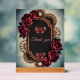 Señal Acrílica Marco Steampunk con rosas y engranajes rojos