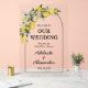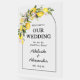 Set the perfect tone for your special day with our elegant Mediterranean Wedding Welcome Acrylic Sign. Crafted with clear acrylic, this modern yet timeless sign can be personalized with your names, and wedding date. Fresh and vibrant, this design features bright yellow lemons, lush green botanical leaves, and soft pink lemon blossoms for a look inspired by a blooming citrus grove along the coast. The cheerful yet refined artwork adds a romantic pop of color while maintaining an elevated, elegant feel, perfect for couples planning a light-filled Mediterranean, garden, or destination wedding. Its sleek design adds a sophisticated touch to your ceremony entrance or reception space, making your guests feel welcomed in style. This welcome sign is a part of a wedding collection with coordinating items available. We encourage you to explore the full set to create a perfectly matched celebration.
