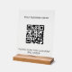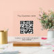 Fondo transparente. Personalice y agregue su nombre de negocio, su propio código qr y un texto. Texto negro.