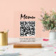 Coloque estos elegantes signos en las mesas para que los clientes puedan escanear y seleccionar sus propias opciones de menú. El moderno signo acrílico es transparente con texto negro, lo que da un aspecto estético limpio y ayuda a evitar los signos que bloquean la vista de cualquiera. El texto de arriba y abajo del signo es personalizable para sus propias necesidades de negocio.