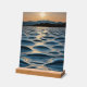 An artist's rendering of gently rolling waves in the light of dawn, combining a minimalist approach with the natural beauty of the ocean. The contrast between the soft tones of the water and the warm glow of the sun creates a calm and serene atmosphere, ideal for conveying peace and reflection.