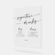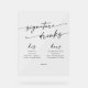 Este signo de moda de boho claro de bebidas de boda acrílico es perfecto para un boda minimalista. El moderno diseño bohemio presenta una caligrafía rústica sencilla con un estilo único y clásico. Perfecto para cualquier temporada: primavera, verano, otoño o invierno. Personalice el cartel de su bar boda con sus cócteles especiales.
