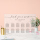 Bienvenidos a sus invitados y déjenlos que encuentren sus asientos en este elegante cartel acrílico con la hermosa frase "encuentra tu asiento" en caligrafía moderna escrita a mano. Utilice nuestras 12 tablas para agregar los nombres de invitados y, si es necesario, puede borrar tablas e incluso volver a ajustar las posiciones de la tabla seleccionando "Editar usando Herramienta de diseño" con el botón situado al final de los cuadros de texto de la plantilla, también puede aumentar el tamaño de fuente o reducirlo para que se ajuste mejor a su cantidad de tablas. 12" x 18" es simplemente nuestro tamaño predeterminado, puede elegir entre varias opciones de tamaño. "NOTA IMPORTANTE: firme en una hoja acrílica de alta calidad con el texto impreso en negro y una mirada falsa escarpada detrás, proporcionando una visión clara del texto en todos los espacios, y dando el llamado escarpado para una fracción del costo! Los tamaños pequeños vienen con un bloque de madera para mantenerse, los tamaños más grandes necesitan un caballete o una superficie para estar de pie, así que no deformarán. Este mismo diseño de signos también está disponible en la impresión poster y en las opciones de tablero de espuma, que puede encontrar en nuestra colección". Parte de nuestra colección "Modern Elegant Wedding and Events Signage" con una variedad de productos de coordinación disponibles. Dimensiones del signo de la foto de demostración con soporte: 24" x 36"