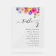 Elegante moda colorida, flores silvestres en los asientos con hermosas flores y hojas. Los huéspedes podrán guiarse con estilo por esta moda, colorida y luminosa boda de flores silvestres con un cartel de acrílico. Con una vibrante variedad de flores silvestres rosas, amarillas, naranjas y violetas, este diseño aporta un toque animado y romántico a su decoración boda. El moderno material acrílico aporta un toque elegante y contemporáneo, mientras que la elegante tipografía garantiza claridad y sofisticación. Perfecto para bodas al aire libre, boho o jardín, esta carta de asientos combina con gusto el encanto original con la elegancia moderna, ayudando a los huéspedes a encontrar sus asientos sin esfuerzo y mejorando al mismo tiempo la estética de su evento.