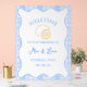 Bienvenido a sus huéspedes con este cartel de "Bienvenidos al Boda de" sobre limoneros. Con un delicado borde de azulejos azules y un divertido ilustracion de limón, este cartel le da un toque de encanto mediterráneo a su decoración boda. Personalízalo con los nombres, ubicación y fecha de la pareja para crear una entrada única que establezca el tono del día. Tanto si se trata de una celebración junto al mar como de un asunto de jardín, este signo de personalizable combina sin esfuerzo la elegancia y un ambiente fresco y caprichoso, lo que lo hace perfecto para cualquier estilo boda.