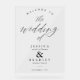 Crea tu propio signo de bienvenida boda personalizado con un diseño moderno de estilo tipográfico de moda con elegante caligrafía de escritura. Añade tu fecha de nombres y detalles de tu día especial.