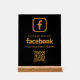 Boost your business's social media presence with this elegant and minimalist acrylic sign. Featuring the iconic Facebook logo in a sophisticated gold hue, this sign is designed to attract attention and encourage customers to connect. The integrated QR code provides a seamless way for patrons to instantly follow your Facebook page, driving engagement and expanding your online community. Perfect for storefronts, counters, or event tables, this sign is a professional and stylish addition to any business looking to enhance its digital footprint and connect with customers on Facebook.