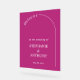 The Modern Minimalist Acrylic Sign features a vivid magenta background with clean white text, creating a bold and contemporary visual impact. A subtle arch frames the wording, adding structure and elegance while maintaining a minimalist aesthetic. The high-contrast design ensures clarity and draws attention, making it both a functional and stylish element that complements the overall wedding suite.