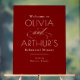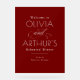 This romantic burgundy red acrylic rehearsal dinner welcome sign radiates luxury and sophistication, making it a perfect statement piece for your wedding. Its glossy finish adds a sleek, modern touch to your ceremony and reception spaces, seamlessly complementing a wide range of wedding themes and styles. The minimalist text, paired with elegant calligraphy for the word "and," gracefully connects the couple's names, adding a romantic and stylish detail that elevates the overall ambiance of your special day. This stunning sign not only enhances your décor but also sets the tone for a night filled with love and celebration.