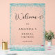 Señal Acrílica Moderna, plateada, azul bienvenida ducha de novia