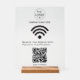 Ofrece acceso instantáneo a Internet con este moderno Rótulo acrílico para el Easy Scan to Connect WiFi. Diseñado con un acabado elegante y transparente, muestra los detalles de su red y el código QR en un formato limpio y profesional. Perfecto para oficinas, cafés o espacios Airbnb, este elegante cartel hace que la conexión a WiFi sea fácil para huéspedes, clientes o clientes.