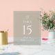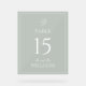 Señal Acrílica Monograma moderno Boda verde sabio Número de tabla