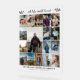 Cartel conmemorativo acrílico personalizado con 17 fotos de tu ser querido, su nombre y años de vida. Una vida bien vivida en la cima. Cartel de collage de fotos de celebración de la vida con fuentes verdes y elegantes y un efecto falso de escarcha. Cartel del funeral de collage de fotos con 17 fotos verticales de tu ser querido y texto negro sobre un fondo transparente.