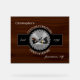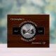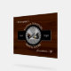 Rótulo acrílico del carpintero de madera personalizado. Diseño moderno con Plano de Madera y Hoja de Saw con fondo de color de nuez oscura. Dibujos de Claudine Boerner. Copyright (c) 2024 Claudine Boerner y sus licenciantes. Todos Los Derechos Reservados. En la parte inferior del cartel, de diferentes tamaños, también hay un bloque de madera.