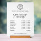 This modern acrylic sign is designed to display business hours clearly on counters and reception desks. It helps customers quickly see opening times while reinforcing your brand identity.