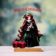 Navidades Elf con Kitten. En una noche de invierno encantadora, cuando las estrellas brillan como diamantes brillantes en el cielo, un chica elfo es el centro de un escenario mágico. Su largo y florido cabello rojo cae en suave olas sobre sus hombros y enmarca su delicada cara, mientras que sus orejas puntiagudas miran misteriosamente desde su pelo. Lleva un elegante vestido negro cubierto con un brillante overlay verde - una armoniosa combinación de oscuridad y luz. Esta escena exuda una calma mística, como si el tiempo permaneciera inmóvil por un momento y la magia del momento alejara todas las preocupaciones