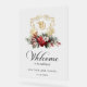 Decoración boda, intemporal y elegante, pero festiva, con escudo floral dorado y clásico, acentuado por un pulverizador colorido de flores y verduras de Navidades rojos y blancos. Esta plantilla de personalizado formal incluye campos de texto editables así como gráficos de texto caligráficos personalizados.