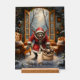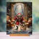 Navidades espeluznantes Goblin - Dark Fantasy Evil Santa Horror Art. Un siniestro goblin vestido como Santa Claus da un giro oscuro a la temporada de fiestas. Con ojos rojos brillantes, una sonrisa amenazante y un saco lleno de pequeños duendes espeluznantes, se encuentra en una sala nevada y decorada festivamente. Los árboles cubiertos de nieve, las lámparas brillantes y las dos sillas crean un ambiente Navidad inquietante. Perfecto para los fanáticos del horror, la fantasía oscura y los diseños alternativos de las vacaciones.
