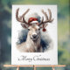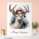 pintura acuarela de un reno que usa un gorra navidad al estilo navidad