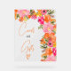 Guíe a sus huéspedes con estilo usando este elegante signo acrílico de "Tarjetas y Regalos" de ducha de novia. Con una acuarela vibrante en tonos rosas, naranjas y amarillos, este diseño pintado a mano aporta un toque alegre a la mesa de regalo o a la entrada. El fondo acrílico transparente y el texto de escritura moderno crean un estilo sofisticado que se complementa con cualquier ducha de novias con temática boho o floral. Perfecto para dirigir a los clientes y mejorar su decoración, este signo es práctico y llamativo.